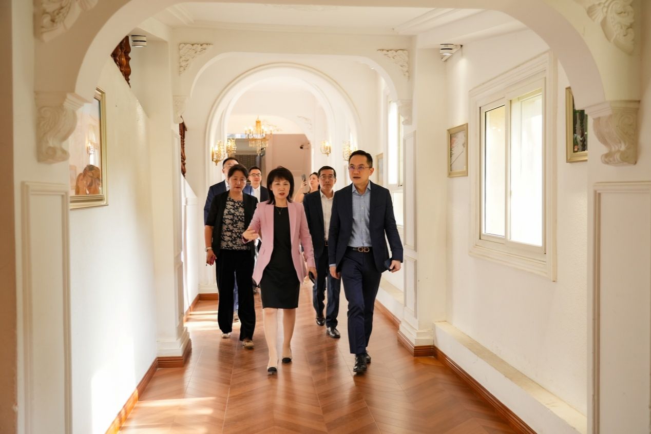 来访交流团由香港特别行政区卫生署署长林文建、澳门特别行政区政府卫生局副局长郑成业带队,香港特别行政区卫生署助理署长方浩澄、首席医生奚安妮,国家卫生健康委员会国际司港澳台处干部易秋莎等卫生领域专家组成。交流团一行参观了花园院史图片展、新住院大楼一楼大厅、教学楼文化长廊,对五楼自拍