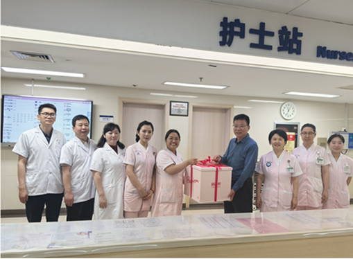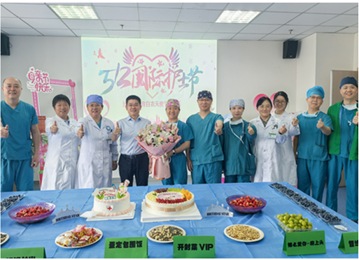 为庆祝第114个国际护士节,5月12日,院领导带领临床部党总支书记、部分处室负责人、总护士长和护理部人员,分组对主院区、西咸院区的重点部门和门诊医技系统等护理单元进行慰问。院领导向临床一线的护士兄弟姐妹们致以节日的问候和真挚的祝福,充分肯定了护士们日复一复的努力与付出,感谢大家在医院高质量发展中所做的贡献,为他们无私奉献、拼搏进取的“南丁格尔精神”点赞,并送上定制的精美蛋糕。