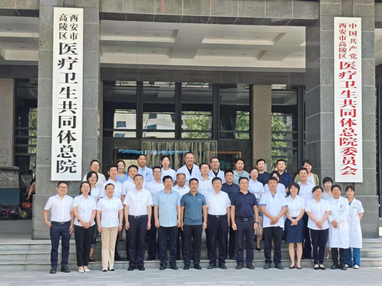 西咸院区党政管理部主任吴红娟、业务管理部主任刘鹏及临床医技科室专家团队等一行19人,赴高陵区医共体总院开展五楼自拍