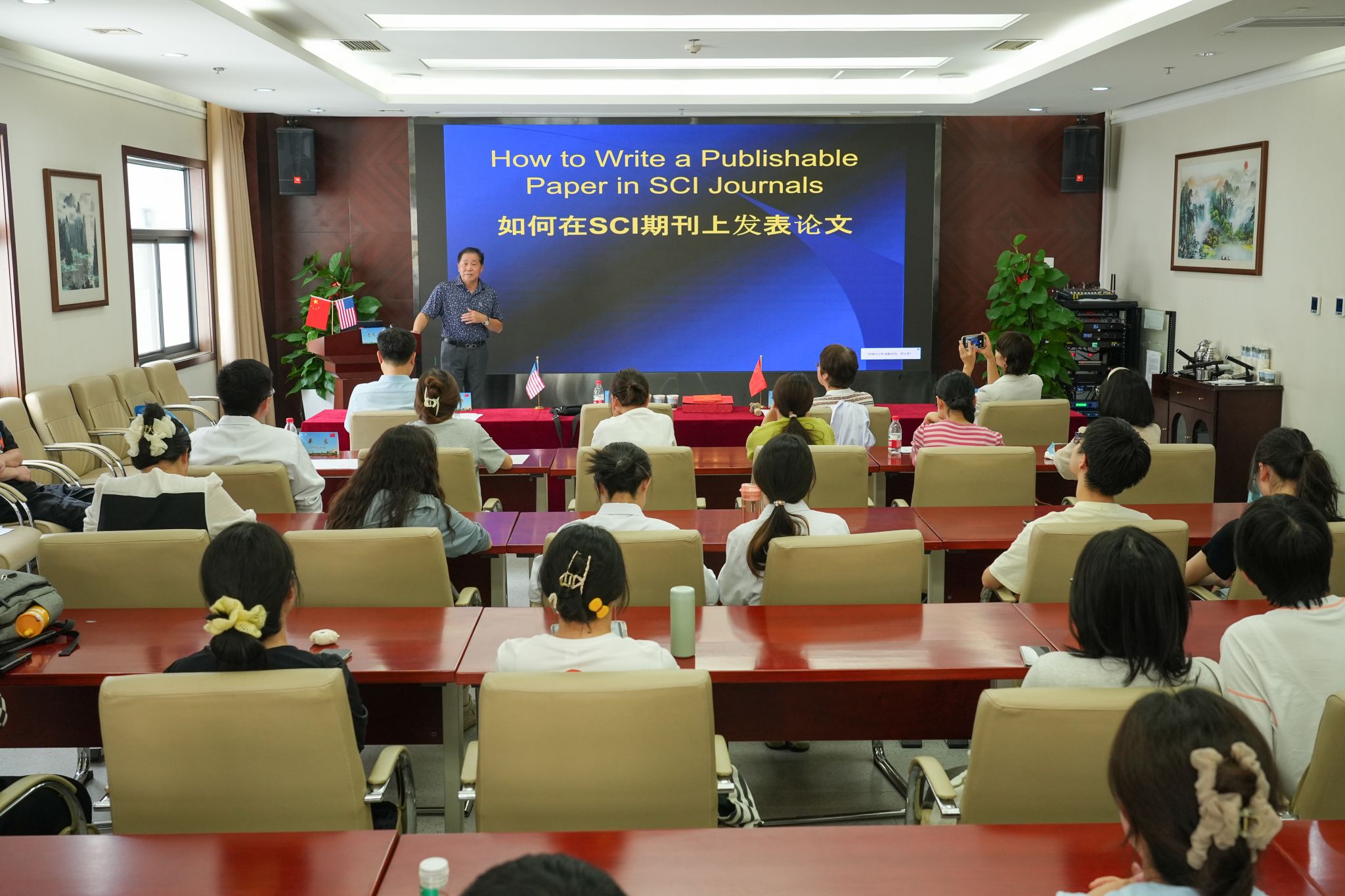 来访期间,鲁元安教授分别在主院区第五会议室、国际会议厅及西咸院区感染性疾病科开展“SCI论文精研之道学术交流会”,感染性疾病科(西咸)李彧主任主持,教学处温红侠副处长致欢迎词。鲁元安教授向参会人员讲授包含《How to write a SCI paper》《How to prepare your Revision》《Anti microbial Resistance - A Growing Threat to Modern Medicine and Global Health》《How to get ready for Submission》等4个课题的3场讲座。课程均为鲁元安教授根据五楼自拍