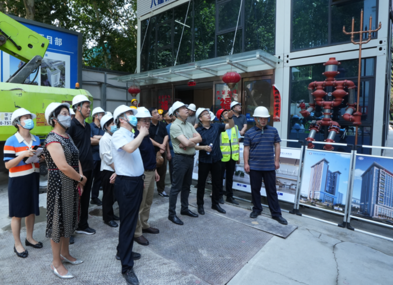 为加快推进医院重点项目建设,强化施工安全管理,确保工程质量和进度,2025年6月13日上午,宋张骏院长带领米涛副院长、段降龙副院长、冯名星总审计师及院办、A栋楼建设办公室等相关职能部门,深入医疗西区A栋住院楼项目建设工地进行行政查房。