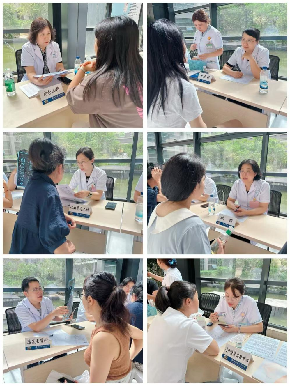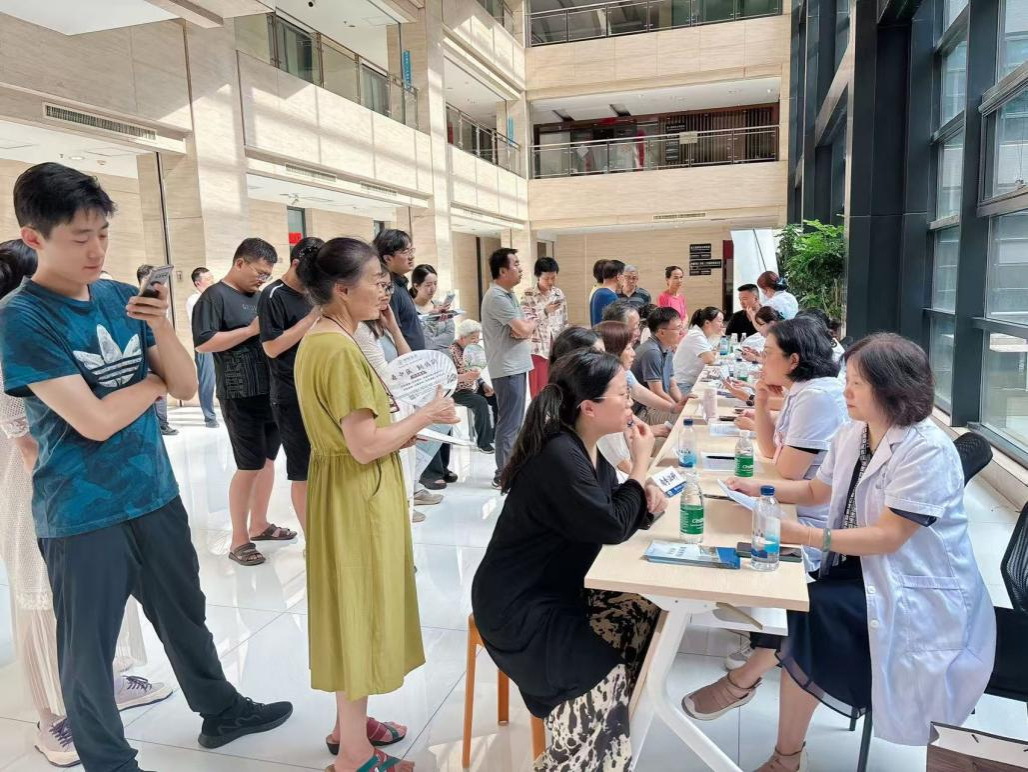 针对设计行业职工的职业健康挑战,如伏案绘图、电脑办公、高强度用眼等,院工会提前调研,定制专属义诊方案。内分泌科就糖尿病等代谢性疾病提供专业咨询和健康指导;中医科把脉问诊,通过耳朵贴片等缓解职工亚健康状态;心内科重点解决职工因久坐、高压工作导致的心血管问题;眼科为“屏幕一族”提供护眼建议;康复医学科指导办公室拉伸操和日常康复训练;门诊健康体检中心针对职工体检报告提出个性化健康管理建议。现场问诊氛围热烈,前来咨询的职工络绎不绝。