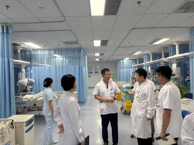 检查组先后来到急诊医学中心、肛肠外科、普通外科等多个住院患者较多的科室。通过实地查看、现场询问、查阅记录等方式,全面了解急危重症患者救治流程及分流、各岗位人员履职、急会诊响应、护理人员夜间巡查制度执行和水电安全及夜间安保等情况。