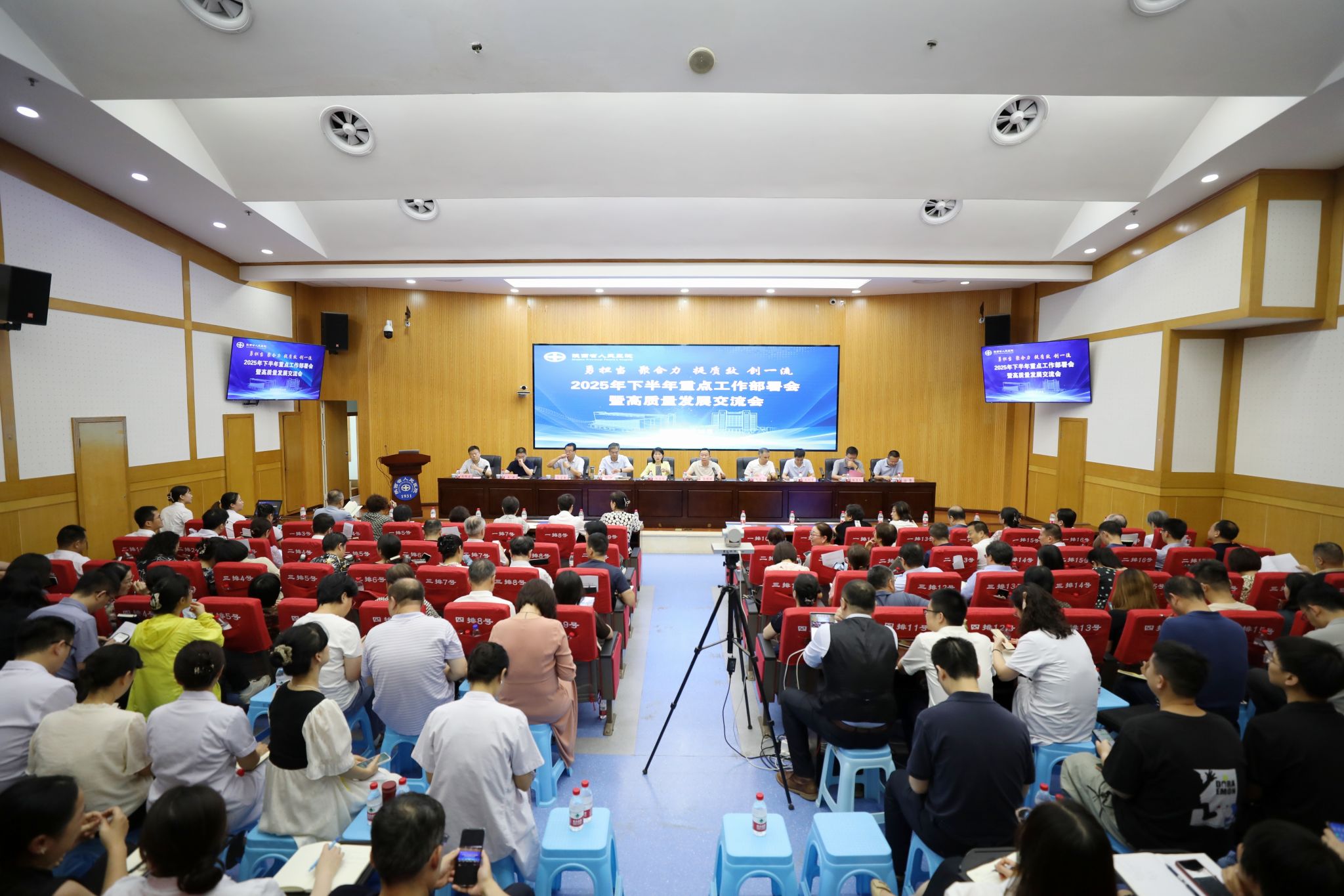 7月18日下午,医院召开2025年下半年重点工作部署会暨高质量发展交流会。会议紧扣“勇担当 聚合力 提质效 创一流”主题,全面总结上半年工作成效,精准部署下半年重点任务,提振发展信心,凝聚发展力量。院领导班子成员、中层干部及机关联络员等600余人参会。院长宋张骏主持会议并作医院上半年工作总结、下半年工作部署,党委书记张玉莲作总结讲话。