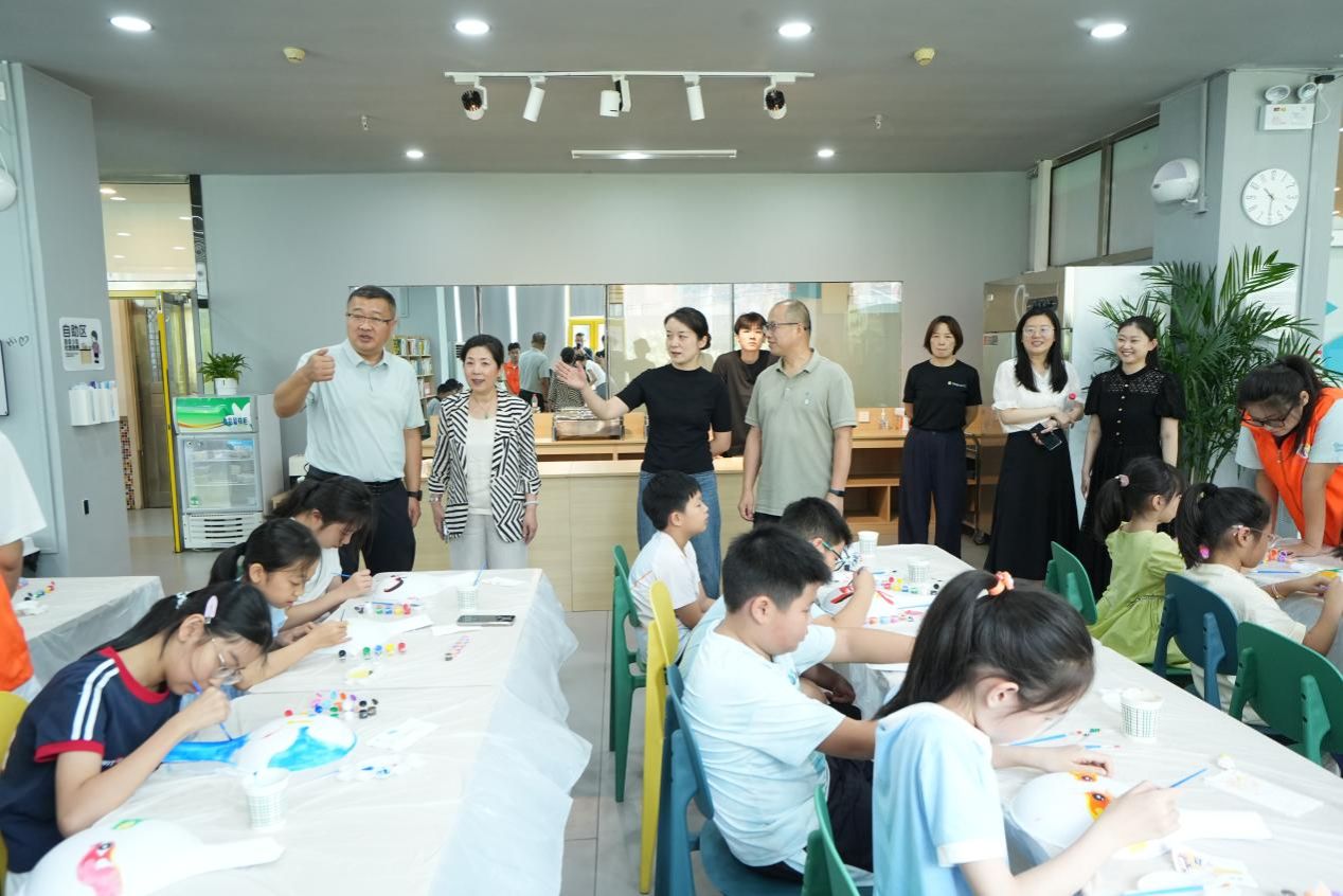 工会副主席杨红玲向朱部长简要汇报了托管班的运行情况并带领朱部长参观了托管班实际工作情况。班上,老师正带领孩子们上非遗手工制作马勺脸谱绘画课,现场气氛活泼有序。
