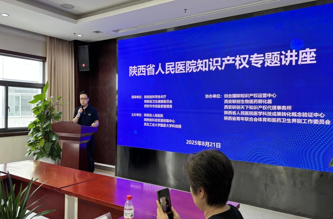联合陕西省科技资源统筹中心、西北工业大学国家大学科技园举办知识产权专题讲座,旨在进一步提升全院科研人员在成果保护与转化方面的认知和实务水平,为加快推动医学创新成果落地应用提供有力支撑。科研成果转化部、科研骨干及临床科研人员参与活动。会议由科研成果转化管理部主任刘仲伟主持。