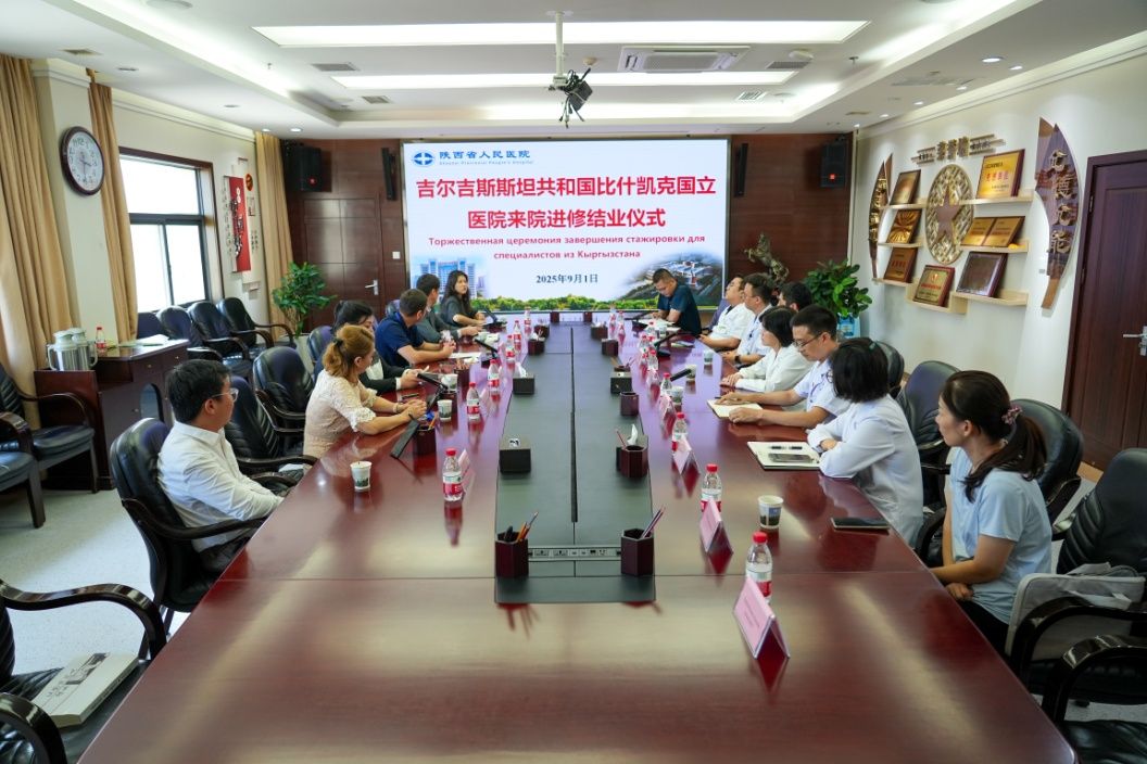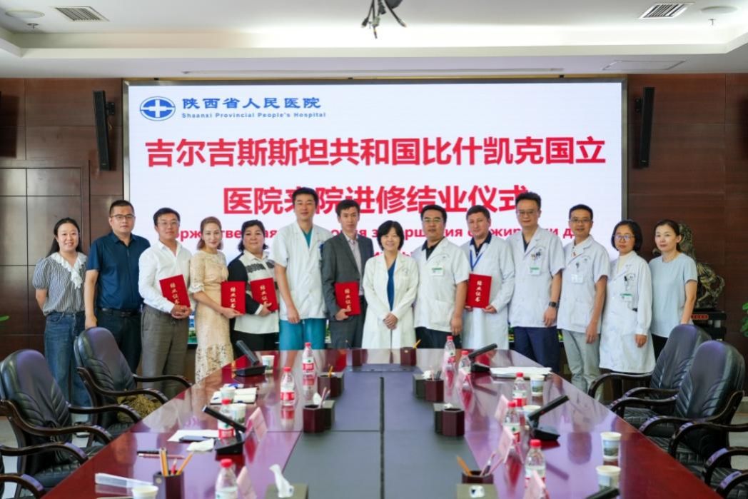 举办“中国与吉尔吉斯共和国医疗研修班”结业仪式,为来自比什凯克国立医院的5名进修医生颁发结业证书。各相关科室主任及带教老师参加结业仪式。
