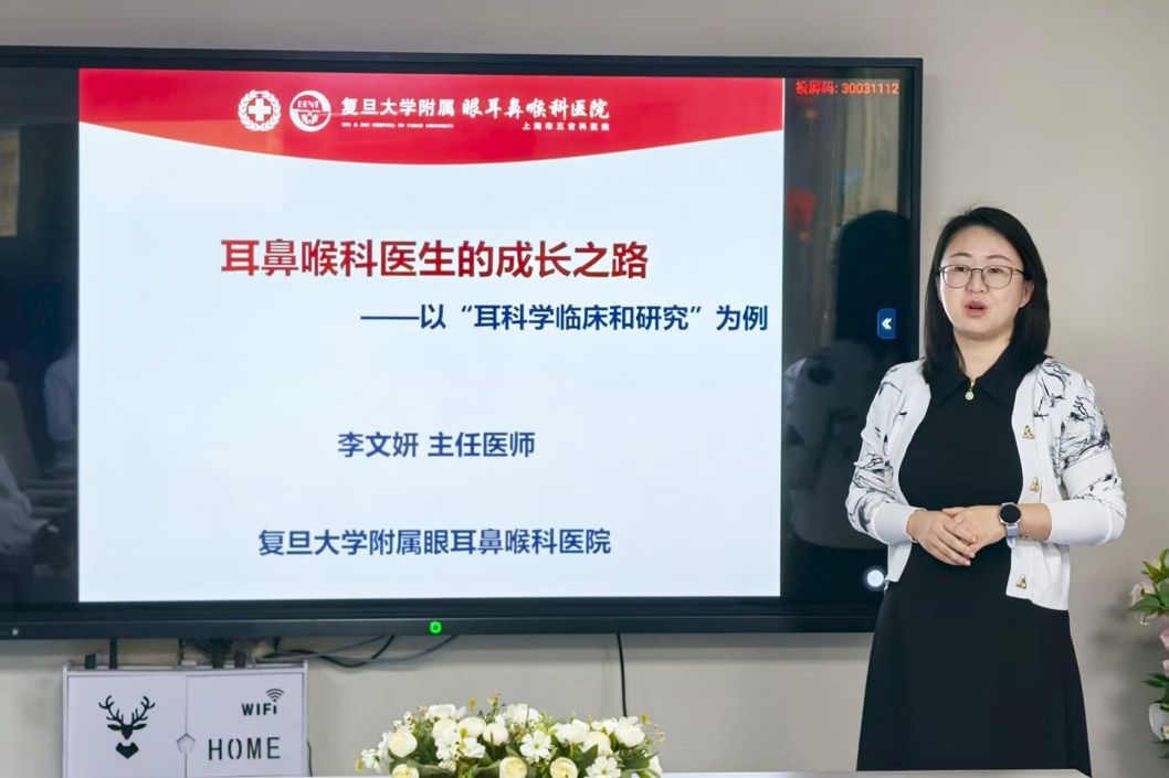 随后,李文妍教授以个人成长与职业发展经历为主线,作了一场内容丰富、启发深刻的学术报告。她系统介绍了耳鼻咽喉头颈外科领域的前沿进展和科研动态,针对临床疑难问题与年轻医师科研成长提出了宝贵建议,鼓励大家在实践中勇于突破,建立新型研究模型,坚持“一条主线、多个分支”的发展策略,为科室医护人员应对诊疗热点难点、把握技术前沿提供了重要参考。