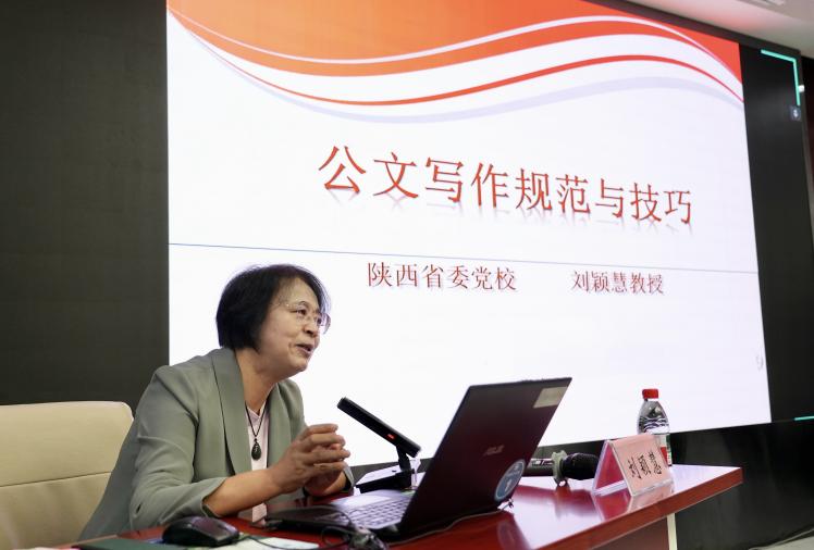为进一步提高行政后勤管理人员公文写作能力和水平,推动公文写作规范化、标准化,持之以恒改进文风,提升以文辅政质效,在院长宋张骏的指导安排下,9月18日上午,院长办公室特邀中共陕西省委党校(陕西行政学院)刘颖慧教授到五楼自拍
