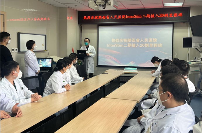在病院的庆祝仪式上,泌尿外科病院孙羿主任发言,充分肯定了陈娟医生团队的工作,指出他们快速完成了骶神经调控手术从开展到20例二期植入的跨越,要求再接再厉,为患者提供更优质的医疗服务。同时叮嘱大家在目前特殊情况下合理安排生活和工作,保护好自己和家人的健康。陈娟医生感谢了大家对神经泌尿亚专业的支持,并分享了相关经验,表示会不断努力,积极提升相关亚专业诊疗水平,更好地为患者服务。