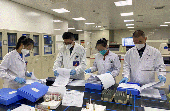 二是坚持每月开展质量安全检查活动,涉及样本的接收送检情况、检测过程中的室内质量控制及失控分析、试剂的保存和使用出入库、仪器的保养和维护、人员的技术能力、报告单的发放和重审报告的登记及原因分析、检测操作的规范性、生物安全的防护等检验过程中的各个环节。同时实行6个亚专业组(临检组、生化组、免疫组、微生物组和分子组)相互交叉检查,不仅查看当月的记录资料,同时调取分析实验结果,指出问题,建立台账,组织学习并整改。
