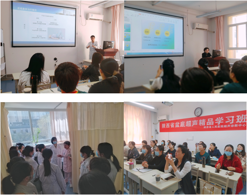 盆底超声检查及诊断过程,老师们一边操作一边讲解,学员耐心听讲并积极实践,学习交流气氛浓厚。