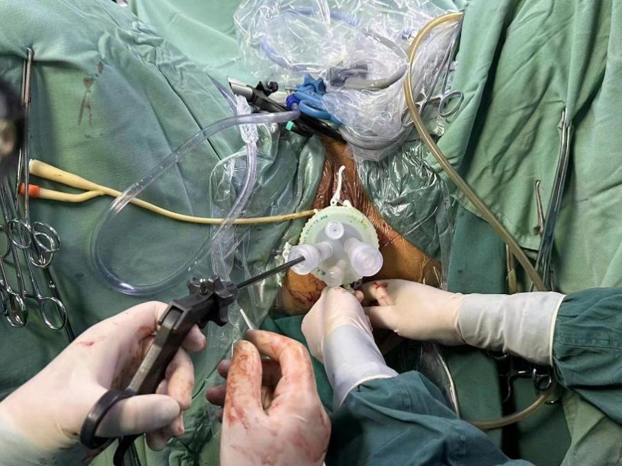 在妇科陈丽宏主任带领下,于翠革主任医师医疗组积极探索单孔腹腔镜技术,近日为一位要求皮肤无痕的23岁年轻女性患者实施了妇科首例经阴道单孔腹腔镜卵巢囊肿剥除术,术中完整地剥除了囊肿,术后皮肤完全无伤口,术后恢复快。
