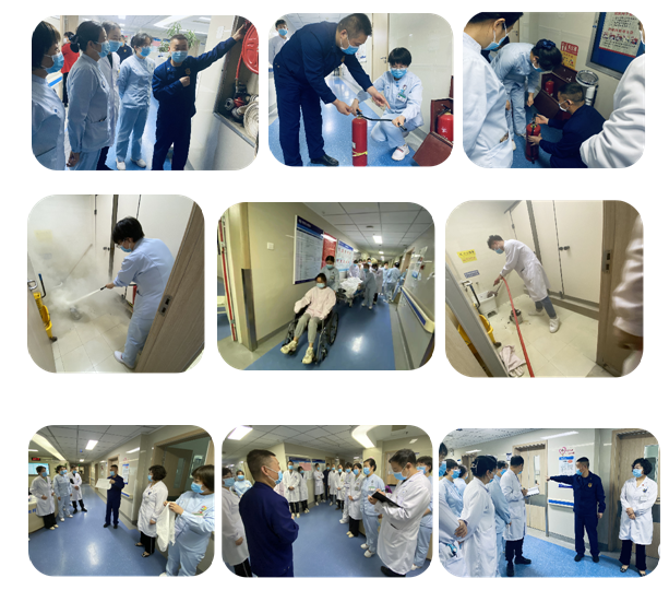 演练分为准备阶段、实际演练和总结讲评三个环节。在准备阶段,首先进行了有关火灾基本知识和逃生技能的培训,使大家了解了医院的消防设施和安全出口位置,并掌握了使用灭火器和应急疏散的方法。在实际演练中,急诊内科医护团队特意安排了一场逼真的火灾模拟,将着火源设置在男卫生间。医护人员立即组织疏散,使用灭火器,消防栓进行扑救,成功控制住了火势。整个过程反应迅速,既紧张激烈,又有条不紊,检验了急诊人的消防应急能力。