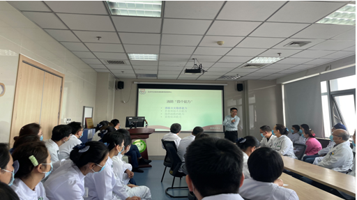 董湃老师结合医院实际情况以及典型的消防案例,对医院消防日常管理、平常检查、制度遵守以及疏散逃生的基本常识、消防火灾的应急和预防、消防器材的正确使用方法进行了深入浅出的讲解。并现场演示了灭火器、消火栓及消防面具的操作使用方法,让参会人员进一步了解并掌握了消防基本常识和基本方法。期间,结合医务场所实际情况,对火灾特点、预防火灾的基本常识,火灾发生、发展、熄灭的基本规律和特点等方面知识进行了讲解,传授了防范措施和如何对初期火灾进行扑救,以及如何组织人员疏散、火场自救逃生方法等知识。