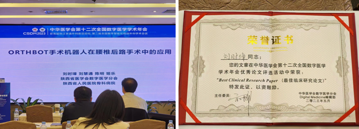 骨科刘时璋教授及刘慧通医师参会并作学术演讲,刘时璋教授团队提交的项目获“最佳临床研究论文”奖。