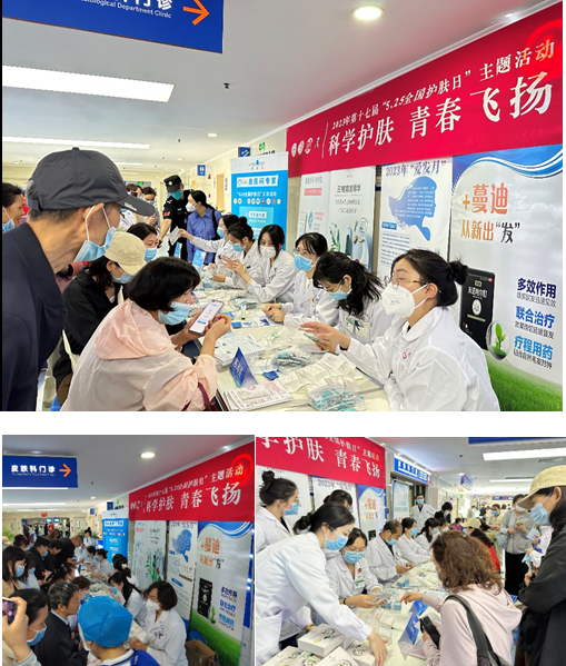 2023年5月25日是第十七届“全国护肤日”,在护肤日即将来临之际,皮肤科于5月24日上午在门诊四楼大厅举办了以“科学护肤,青春飞扬”为主题的全国护肤日活动。