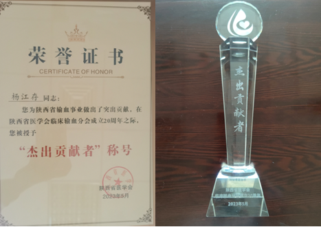 输血科杨江存主任被授予“杰出贡献者”称号。