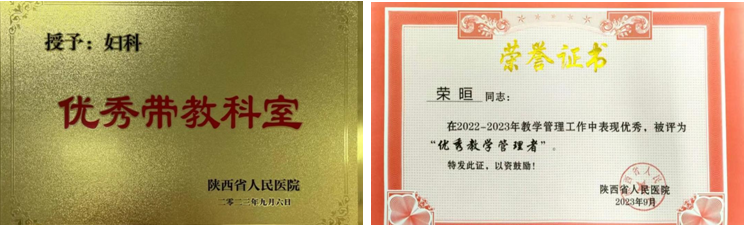 在第39个教师节即将来临之际,医院对2022-2023年度优秀带教科室、优秀教师和管理工作者进行表彰。妇科喜获“优秀带教科室”称号,妇科荣晅副主任医师荣获“优秀教学管理者”称号。