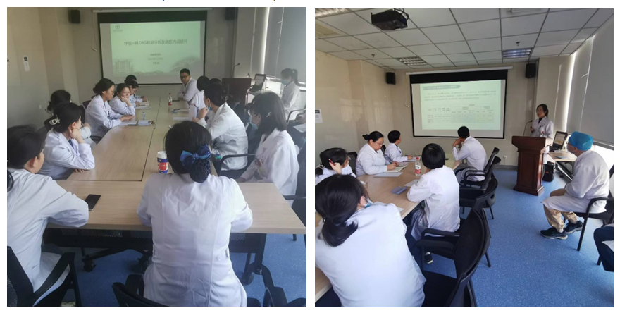 杨成主管技师强调了DRG付费流程中,合理疾病诊断入组、病案诊断编码正确对医保按DRG付费结账的必要性及重要性;邹凯莉医师对呼吸与危重症一科既往数据进行了详细展示,对科室DRG现状、病组分布、入组率、高低倍率占比、病案主页