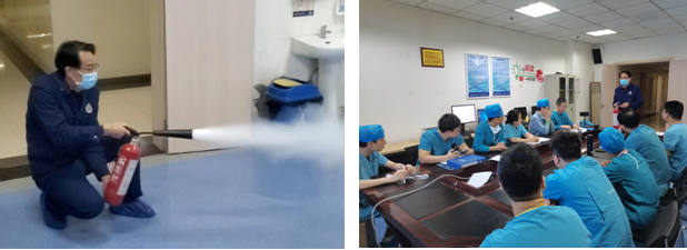 主院区介入手术室梁磊主任、孙永强副护士长全程参与并组织开展,西咸院区副护士长雷博带头和科室当天值班人员参与,视频连接,同时培训。消防中心王胜利和安全管理员、科室消防负责人王一桐及科室人员共计20余人参加,培训理论内容生动、贴切,并实际演练了逃生、疏散技巧、正确扑灭初级火灾的方法及不同灭火器的使用方法,有效提高了医务人员的安全意识及消防技能。