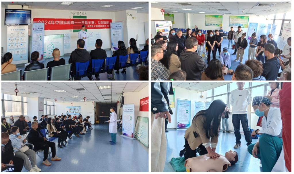 为了巩固宣传效果,麻醉周期间在新大楼六楼家属等候区还开展了麻醉小讲堂,进行心肺复苏公益培训;王晖副主任带领科室骨干前往渭南市临渭区中医医院进行麻醉周学术交流活动;麻醉科护士在“长安护理”微信公众号上进行科普推文,让更多的人了解、关注麻醉。