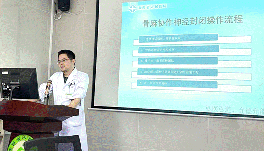 随后,麻醉科张世平副主任医师做了《超声可视化神经调控治疗》的专题讲座,介绍了麻醉科疼痛治疗组开展的相关业务,通过视频展示了颈肩腰腿痛治疗的成功病例。刘时璋主任做总结发言,表示要完善骨科相关疼痛梯度治疗,更好地服务慢性疼痛患者。希望科室间共同协作搭建慢性疼痛治疗的平台,提升质量内涵,提高服务意识,更高效地为患者解决疼痛困扰。