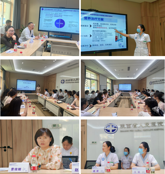 会上,西院二病区尚亮主任表示,希望通过此次交流,为医务工作者提供一个互相学习和分享经验的平台,共同探讨老年和卒中肠内营养的新进展和应用。康复医学科曹维娜护士长聚焦老年人和卒中患者的肠内营养需求,分享了肠内营养的适应症和禁忌症、肠内营养的应用技术和操作要点等,还分享了《颅脑术后康复期患者营养治疗》及在肠内营养方面的经验和心得。西院二病区王妮副护士长讲述了《一例高龄跌倒后骨折并严重营养不良患者个案管理》,通过多学科团队合作,成功处理了高龄患者跌倒后骨折和严重营养不良问题,患者病情得到了明显的改善,生活质量得到了提高。最后,在赵欣护士长组织下,参会人员进行讨论交流,卫娜副主任进行了总结。