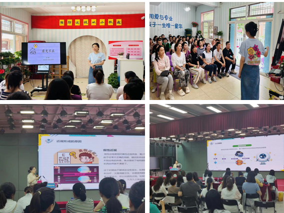 李静主任医师受邀前往甘家寨贝诺幼儿园,为全园教职工带来了近视防控公益讲座。李静副主任结合多年的临床经验,深入浅出地讲解了儿童近视的成因、危害以及预防措施。她强调,近视防控需从幼儿时期抓起,家长和教师应共同关注孩子的用眼卫生,合理安排学习和休息时间,减少电子产品的使用,增加户外活动,让孩子在日常生活中养成良好的用眼习惯。儿童近视并非不可逆,关键在于早发现、早干预。她建议家长定期带孩子进行视力检查,密切关注孩子的视力变化,一旦发现近视迹象,要及时采取措施,避免近视程度加深。讲座结束后与现场教职工进行了互动交流,解答了他们在儿童近视防控方面的疑问。