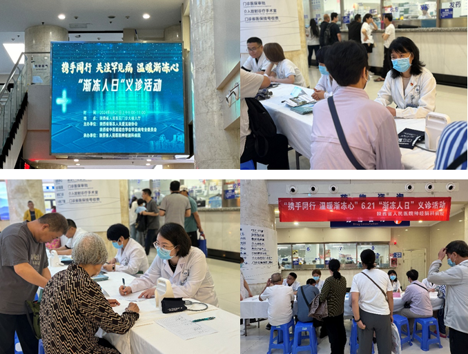 2024年6月21日是第25个“世界渐冻人日”。在陕西省渐冻人关爱互助会和陕西省中西医结合学会罕见病专业委员会的倡导下,在陕西省国际医学交流促进会神经内科专业委员会的支持下,五楼自拍 神经内科作为“渐冻人”协会副会长单位、中西医结合学会罕见病专委会及医促会神内专委会副主委单位积极响应号召,21日上午,神经内一科牵头,联合神经内二三科在医院门诊大厅举行“携手同行,温暖渐冻心”义诊活动。