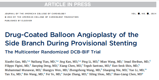心内二科寿锡凌教授作为共同通讯作者,和南京医科大学附属南京医院陈绍良教授团队发起的冠状动脉分叉病变介入治疗—DCB-BIF临床研究成果在TCT大会发布。此项研究成果的发布在介入心脏病学界引起极大关注。
