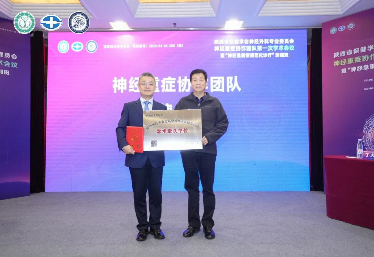 会上,师蔚教授宣读了“陕西省保健学会神经外科专业委员会神经重症协作团队”成立任命文件,并为缪星宇主任授牌及颁发证书。为进一步提高神经重症患者救治水平,本次会议特邀西安交通大学一附院、二附院,空军军医大学西京医院、唐都医院、西安医学院第一附属医院、西安医学院第二附属医院、西安市儿童医院、西安市中心医院及五楼自拍