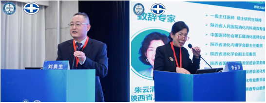 副院长王建华教授和陕西省国际医学交流促进会消化专业委员会副主任委员、消化内一科主任刘贵生教授共同担任并致辞。陕西省国际医学交流促进会消化专业委员会主任委员、消化内一科朱云清教授致开幕词。