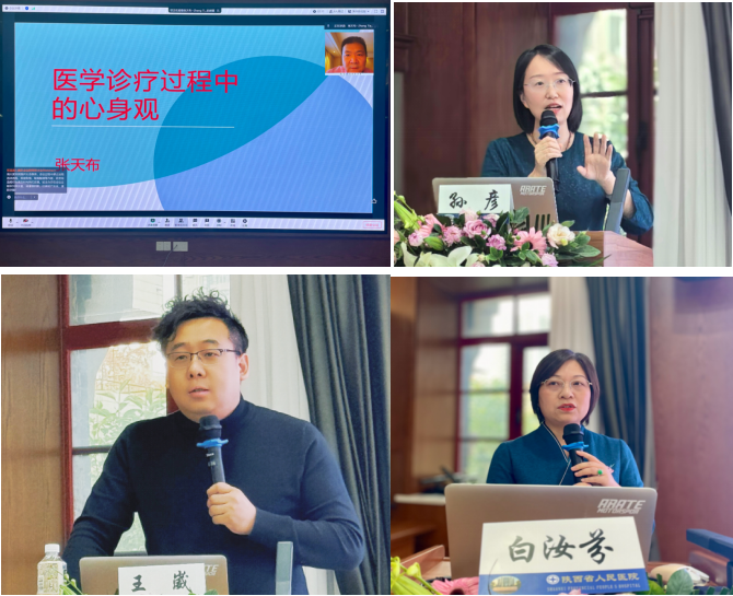 心理科主任医师张天布带来了《医学诊疗过程中的心身观》的主题报告,通过生动的临床案例介绍了在临床工作中如何从心身观的视角去诊治疾病。尤其强调了心身医学工作模式中医生和患者是合作关系,心身医学工作需要不同专业人员全员参与。孙彦主任医师通过对《2019年中国心身相关障碍规范化诊疗指南第二版》的解读,结合临床实际,阐明了心身相关障碍的定义、分类、诊断、评估和治疗。规范化诊疗指南为学员们提供了宝贵的实践参考。西安交通大学第一附属医院王崴教授的《心理应激与心身疾病》简洁、生动地讲述了心理应激如何导致心身疾病发生的和干预的方法。白汝芬督导师的《家庭技巧在心身疾病管理中的应用》则通过自己丰富的心理治疗、督导经验,向大家展示了家庭治疗技巧在心身疾病中的使用方法。学员们对这种从家庭系统角度开展心身诊疗的方式表现出浓厚兴趣。空军军医大学第一附属医院郭力副主任医师通过《躯体疾病伴发的心身问题》讲述了“神经官能症”到“躯体形式障碍”诊断名称的演变,以及她对躯体疾病与心身疾病相伴相生的实际经验,引发学员们的广泛思考。苏艳丽副主任医师在《认知行为治疗技术在医患沟通中的应用》中,结合实例演示了如何通过CBT技术提升医患沟通效果和患者治疗依从性。此外,五楼自拍