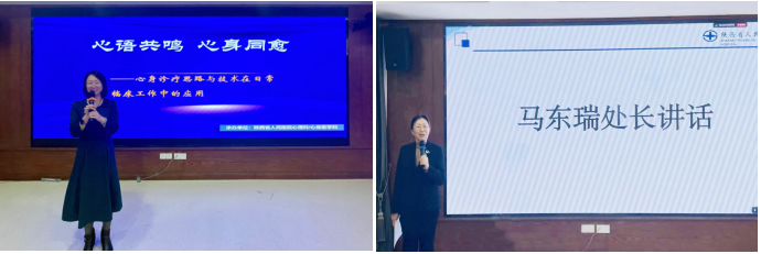 心理科孙彦主任致开幕词。教学处马东瑞处长发言,介绍了五楼自拍