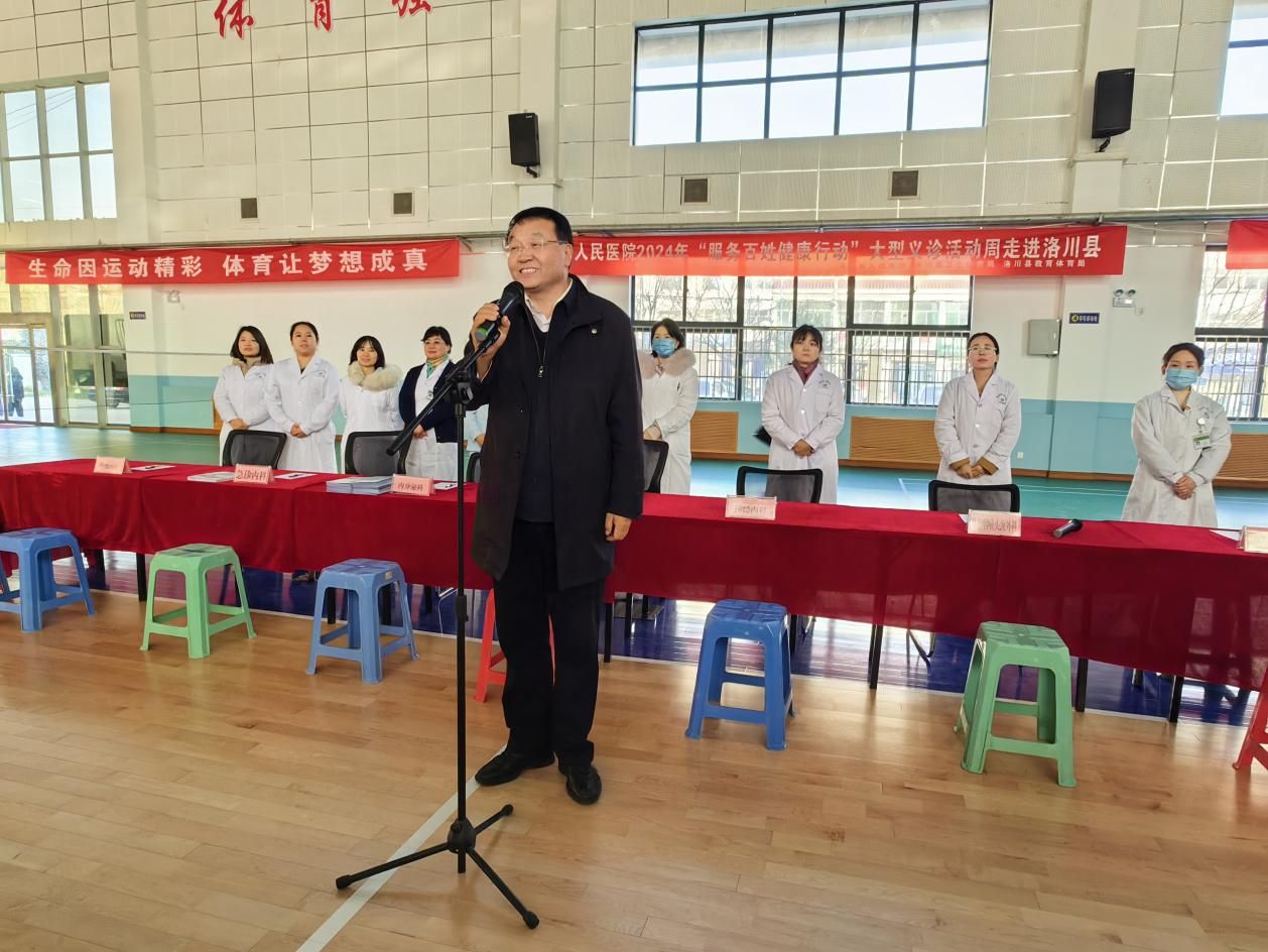 为落实陕西省卫健委、省乡村振兴局《陕西省脱贫地区健康促进行动方案(2022-2025 年)》及《陕西省2024年健康素养促进项目工作方案》开展健康科普下基层配送服务,同时也为进一步提高公众应急救护能力,增强生命安全保障,12月11日上午,由马富春副院长带队,急诊内科刘丹平主任一行11人前往洛川县体育馆开展以“学急救技能,做生命卫士”为主题的义诊及急救技能培训活动。全县教师、群众代表共计200余人参加。马富春副院长代表医院致辞。