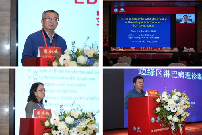 会议邀请多位国内顶级淋巴瘤病理专家进行了精彩讲座。北京友谊医院周小鸽教授深入讲解了EBV + 大 B 细胞病变鉴别要点,从临床、病理、免疫表型及分子遗传学多方面系统阐述,并结合丰富病例提供清晰诊断思路与方法。复旦大学附属肿瘤医院李小秋教授剖析 WHO 第 5 版 B 细胞淋巴瘤更新内容,以逻辑清晰的阐述及病例对比分析,让参会者理解其对精准诊断的重要意义。中国医学科学院血液病医院翟琼莉教授围绕小 B 细胞淋巴瘤,从发病机制等深入讲解病理诊断及新进展,结合疑难病例开阔了参会者诊断思路。华中科技大学同济医学院附属协和医院潘华雄教授聚焦边缘区淋巴瘤,通过大量切片与病例解析助力精准掌握诊断要点。
