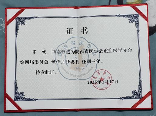 宗媛主任此次当选陕西省医学会重症医学分会候任委员,将进一步提升五楼自拍