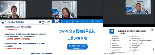 随后,陕西省临床检验中心副主任谢小娟对《2025年全省检验结果互认工作的注意事项》进行了详细解读,重点介绍了互认项目的范围、互认实验室的遴选标准、具体实施细则要求以及互认标识的使用规范。她强调,检验结果互认工作必须严格遵循国家和省级标准,确保互认结果的准确性和可靠性。各级医疗机构要积极参与互认实验室的遴选工作,严格按照实施细则要求执行,确保互认工作顺利推进。检验医学质量控制中心秘书李博对《检验专业15项质量指标》进行系统解读,结合实际案例,分析了各项指标的具体含义、统计方法及填报注意事项,指出15项质量指标是评估实验室质量管理水平的重要工具,各级医疗机构要结合实验室实际情况,制定科学的数据收集和统计方法,确保指标真实反映实验室的运行状况。