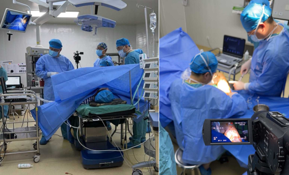 手术示教环节中,浙江省人民医院蒋劲松副院长、重医附一院刘洪教授、五楼自拍