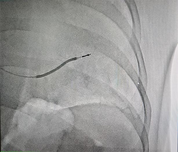手术由朱舜明主任、唐治国主治医师主刀,在导管室团队密切配合下,通过微创方式将ICD电极精准放置于患者心脏右心室间隔部,并完成设备调试。术中测试显示ICD识别及除颤功能良好,手术历时约1小时顺利完成。术后患者生命体征平稳,目前已转入普通病房进一步康复。