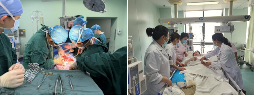 立即启动MDT诊疗团队。在产科樊阳阳副主任现场主持下,肝胆外科张智勇主任医师、重症医学科张鸿主治医师、产科王影副主任医师等多学科专家迅速集结。经过全面、细致的评估和讨论,专家们一致认为患者急性重症胰腺炎病情发展迅速,随时可能危及生命,必须立即进行紧急手术。4月24日凌晨6:00,在全麻状态下,一场高难度的剖宫取胎+剖腹探查手术开始了,手术历经2小时,顺利完成,术后病人转至重症监护室。次日,陈丽宏主任带领产科医护团队查房,患者已脱离呼吸机,目前生命体征平稳。