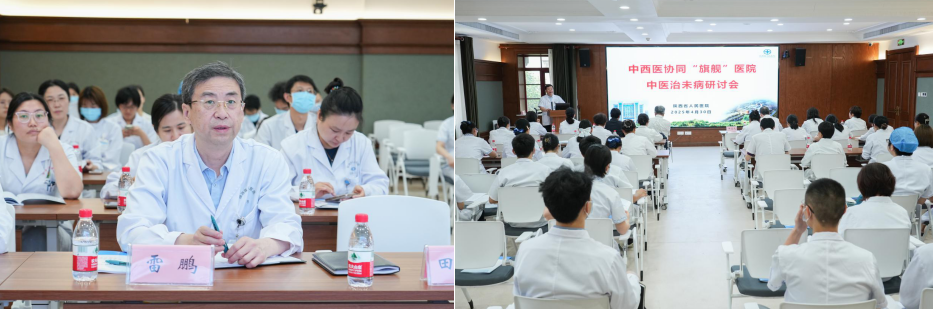 第一届“西学中”培训班学员、中西医协同示范病房建设科室负责人及相关学科骨干参会。会议由学科办田应选主任和中医科李娟娥副主任主持。