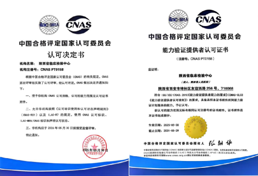 陕西省临床检验中心成功获得中国合格评定国家认可委员会(CNAS)颁发的能力验证提供者(PTP)认可证书,正式成为全国第10家具有CNAS PTP认可资质的医学检验领域能力验证提供机构。