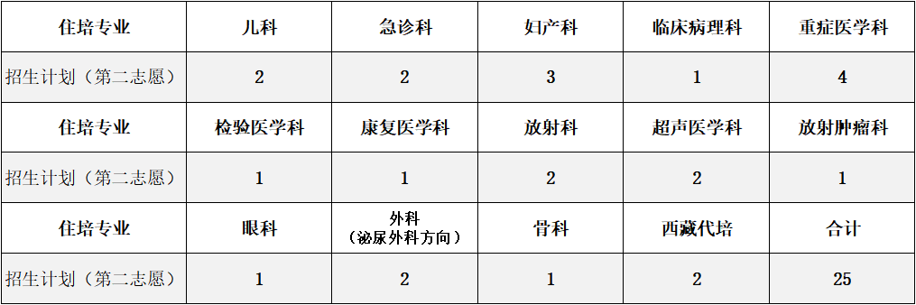 2024年住培第二志愿招收专业及名额分布(合计25人)