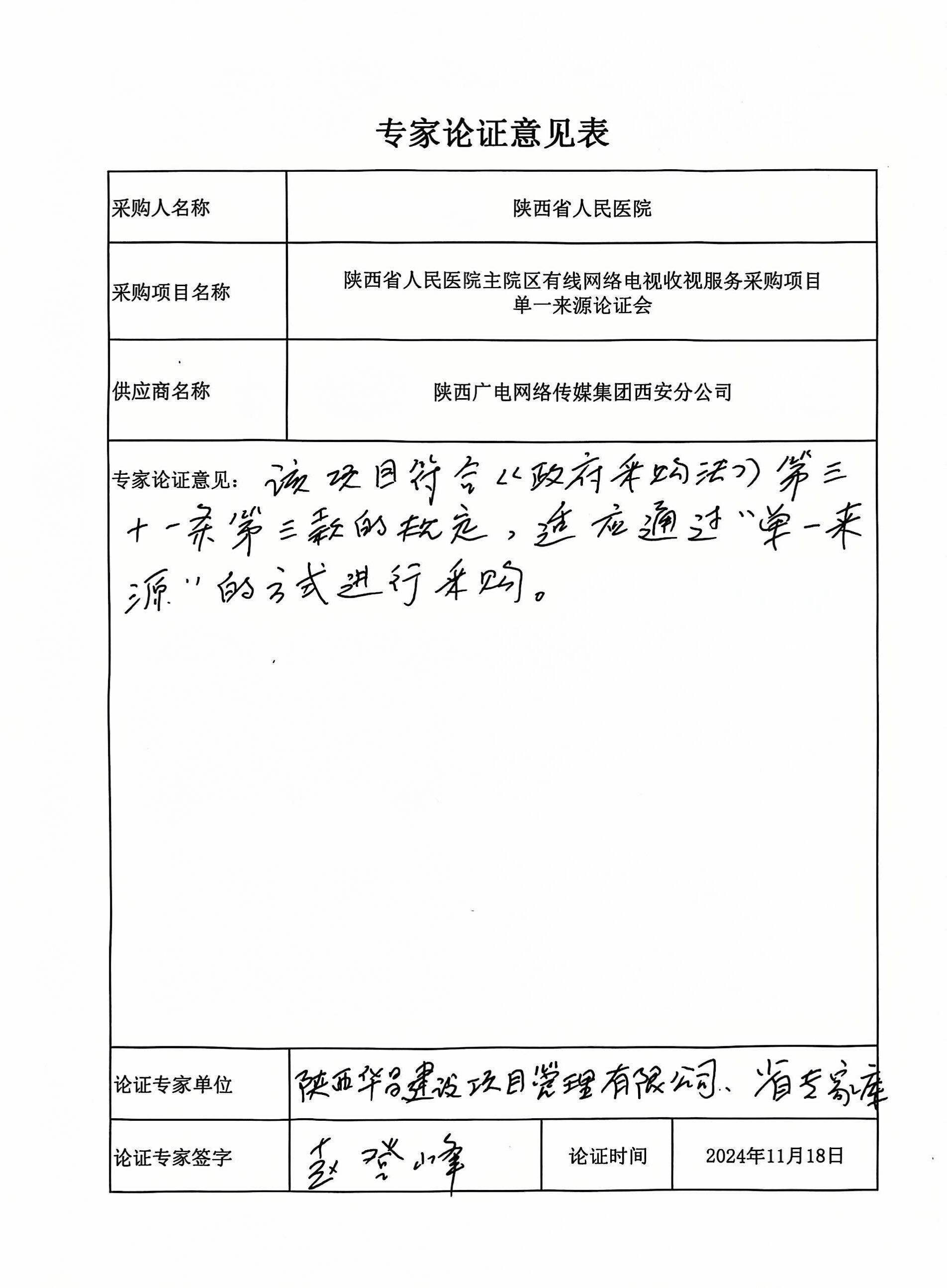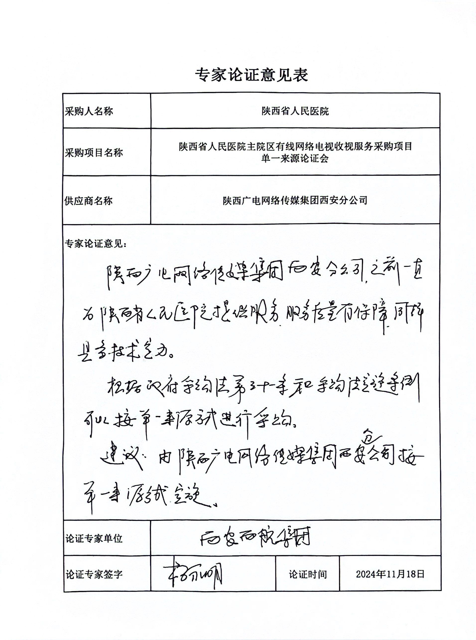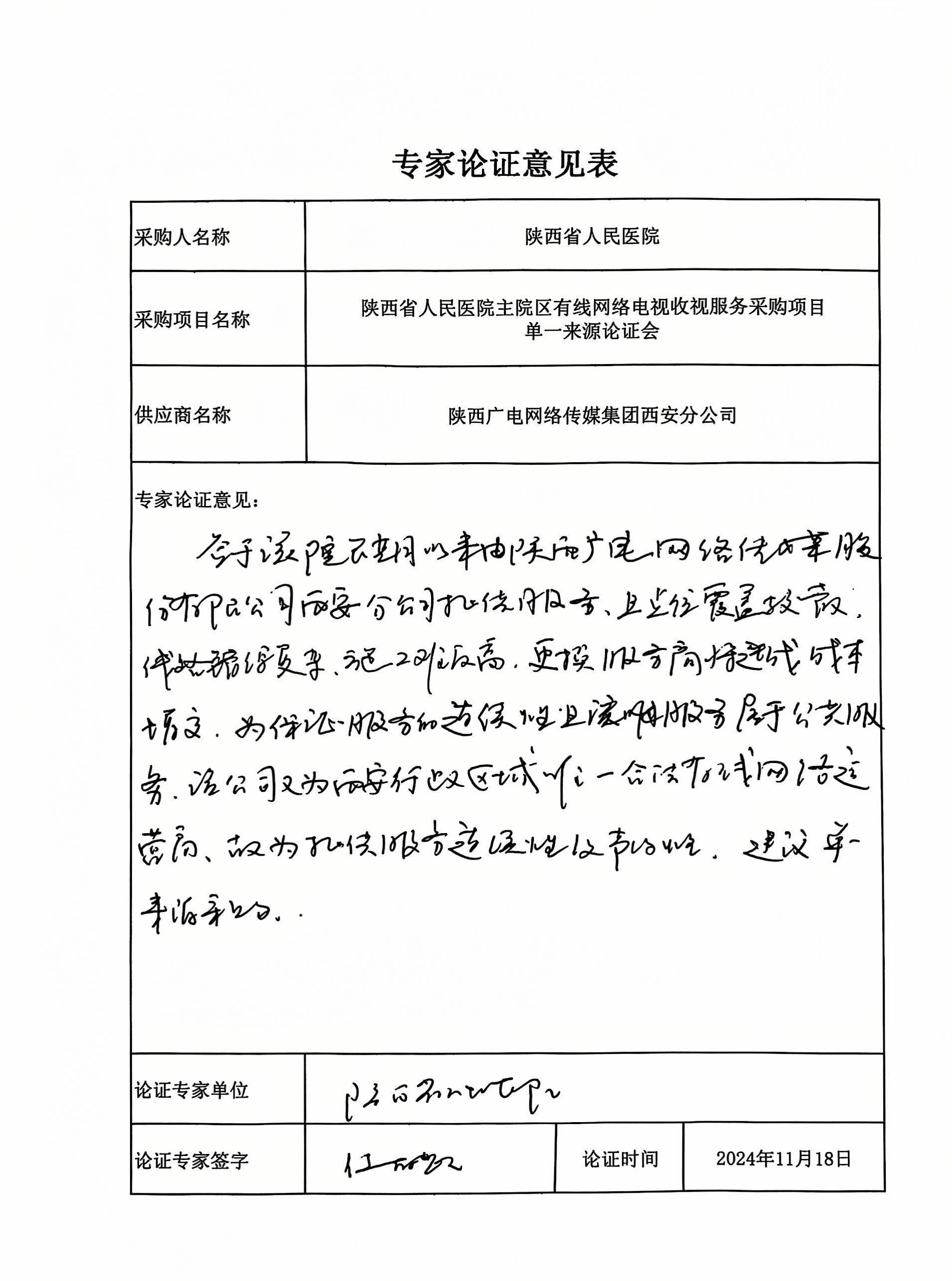 五、申请理由:为保障服务的延续性,为医院有线电视网络提供持续稳定的网络服务和收视保障,该项目只能从唯一供应商采购。