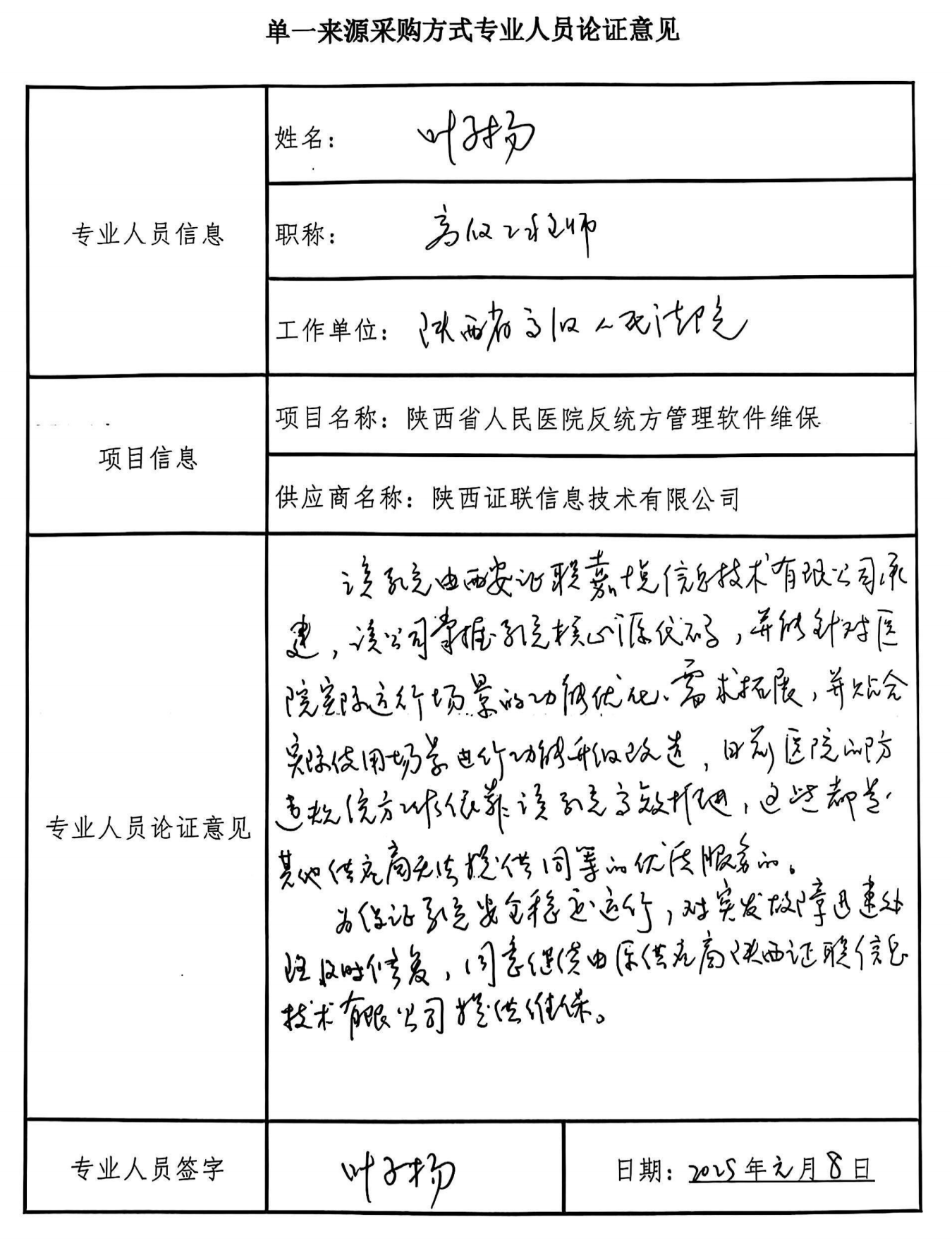 的反统方系统于2020年由西安证联嘉悦信息技术有限公司(现更名为:陕西证联信息技术有限公司)承建,该公司掌握系统核心源代码。自系统投入使用后,该公司持续承担起系统全方位的维护工作,同时进行了针对医院实际运行场景的功能优化、需求拓展。根据使用部门要求,该供应商定制了贴合实际使用场景的部分功能升级改造,相关改造与五楼自拍