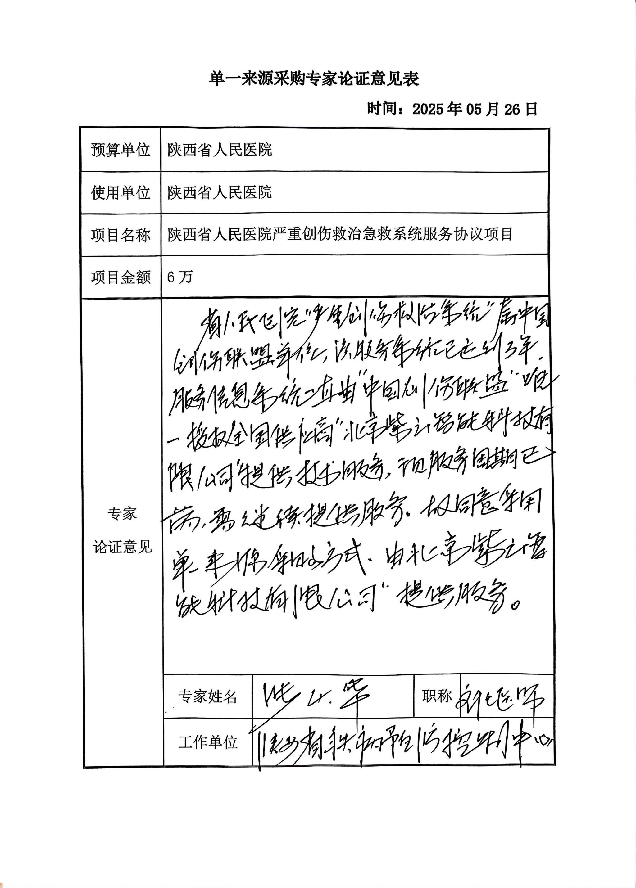 二、采购项目名称:严重创伤救治急救系统服务协议