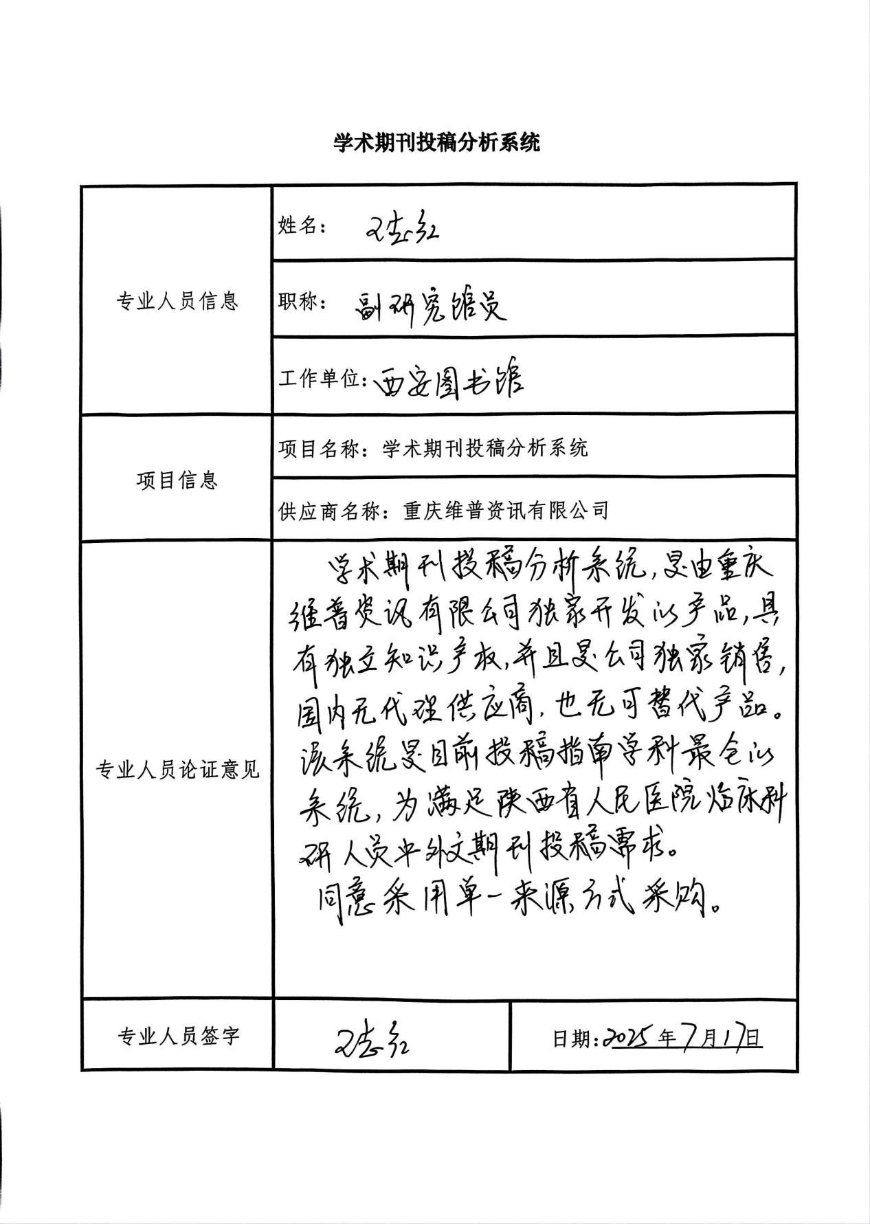 1、拟定供应商名称:重庆维普资讯有限公司