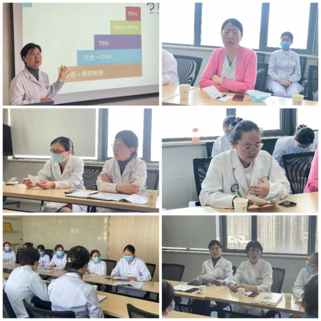 随后营养专科护士党欣、肿瘤专科护士陈曦分别对患者的营养和心理状况进行汇报,曹睿护士长、李婷护士长、郭花老师、田亚涛医生分别从中医、营养、心理、肠内营养护理等不同角度进行分析,提出患者的营养护理措施,并对此次教学查房提出了宝贵的意见和建议。最后,赵小红总护士长总结要求,要持续学习恶性肿瘤营养评估量表准确评估,应用新的营养理念对患者进行营养指导,促进患者早日康复。